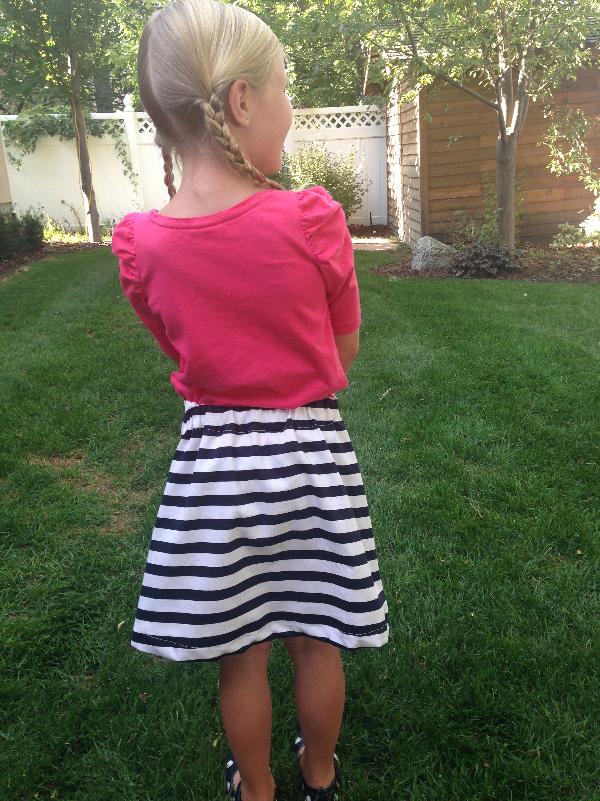 The view of the pattern I did was simple and quick to sew. The skirt is a cute a-line with a waistband facing and elastic in the back, creating a sleek front. This version will be a wardrobe staple for sure.