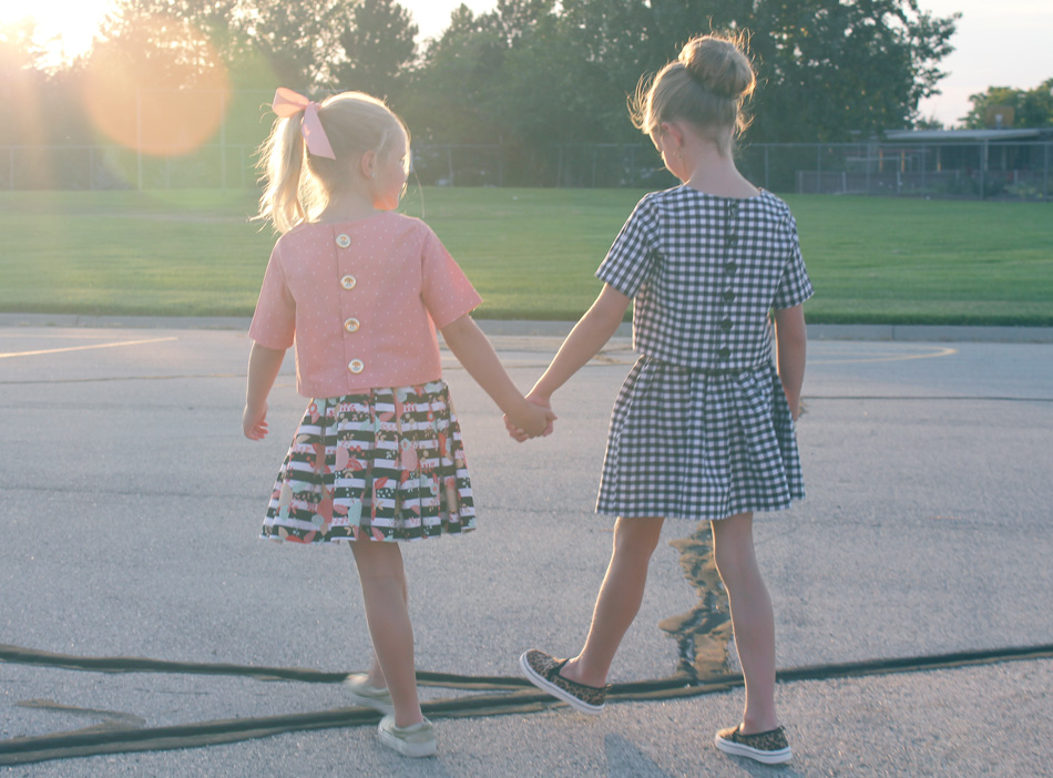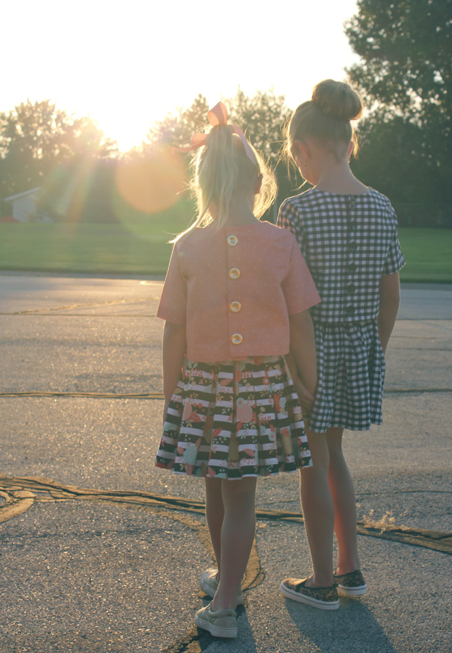 Thank you so much sewing up mu pattern. You know how much I adore your version. I love how classic your girls look in the set and how it easily can be paired with jeans for a modern look. Love it.