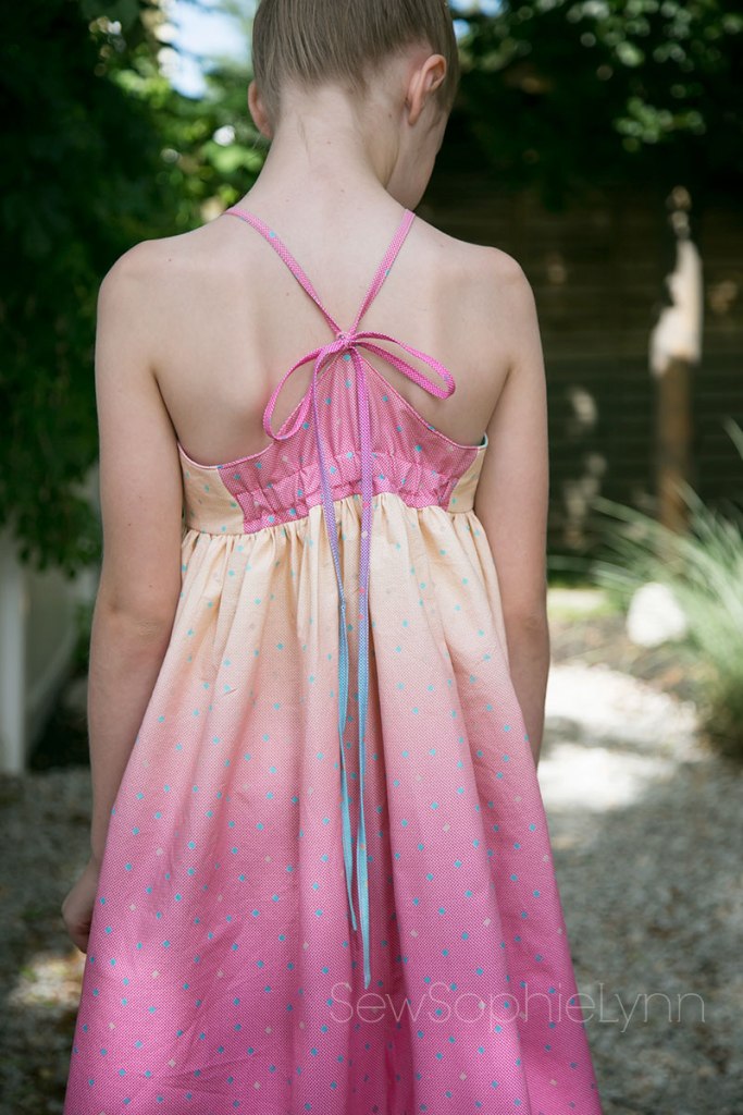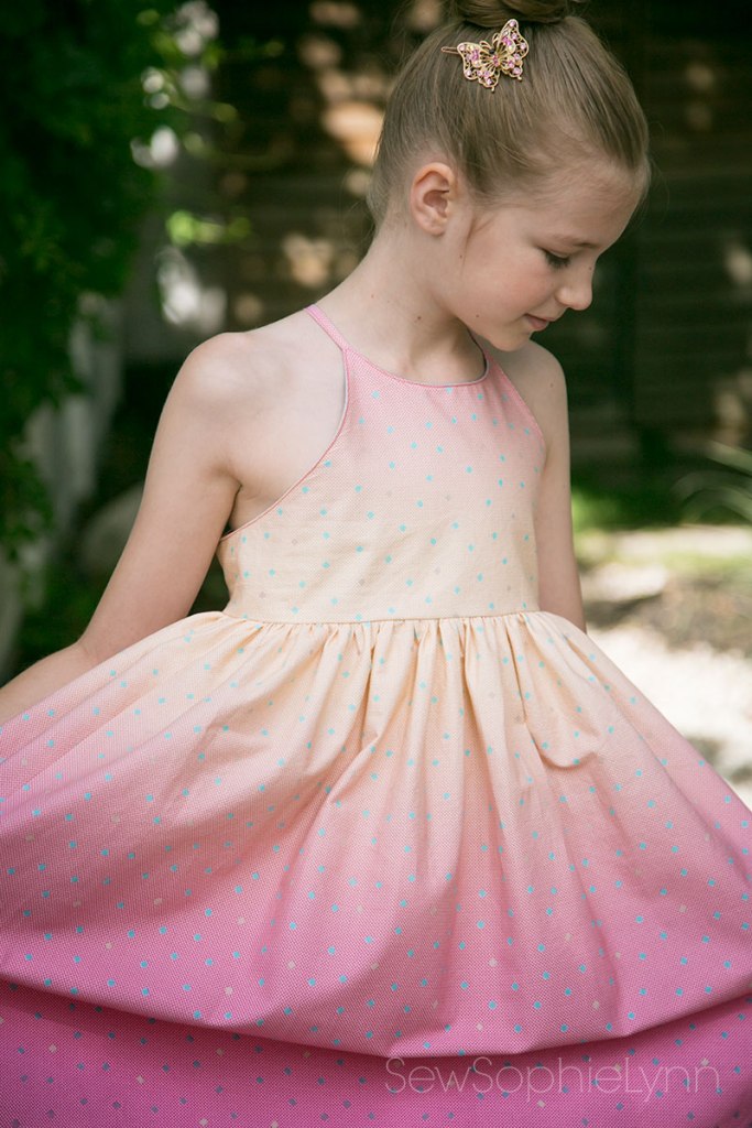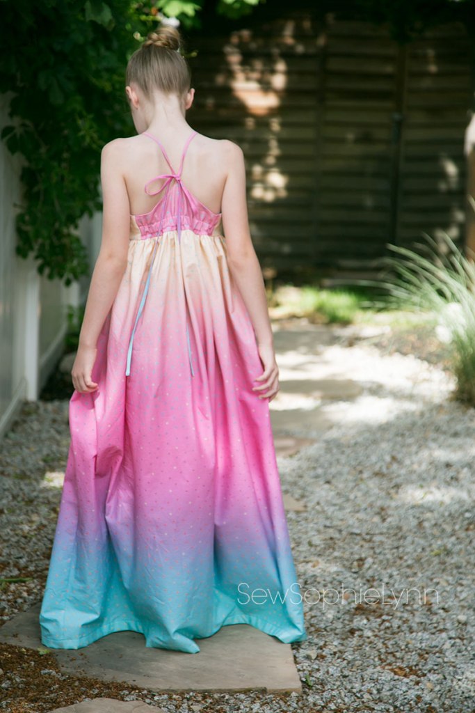 This fabric really is amazing! The ombre runs selvage to selvage and it was the perfect width for this maxi dress. My mind is racing with all of the cute possibilities with it! Thank you to Riley Blake for letting us play with this fun line!