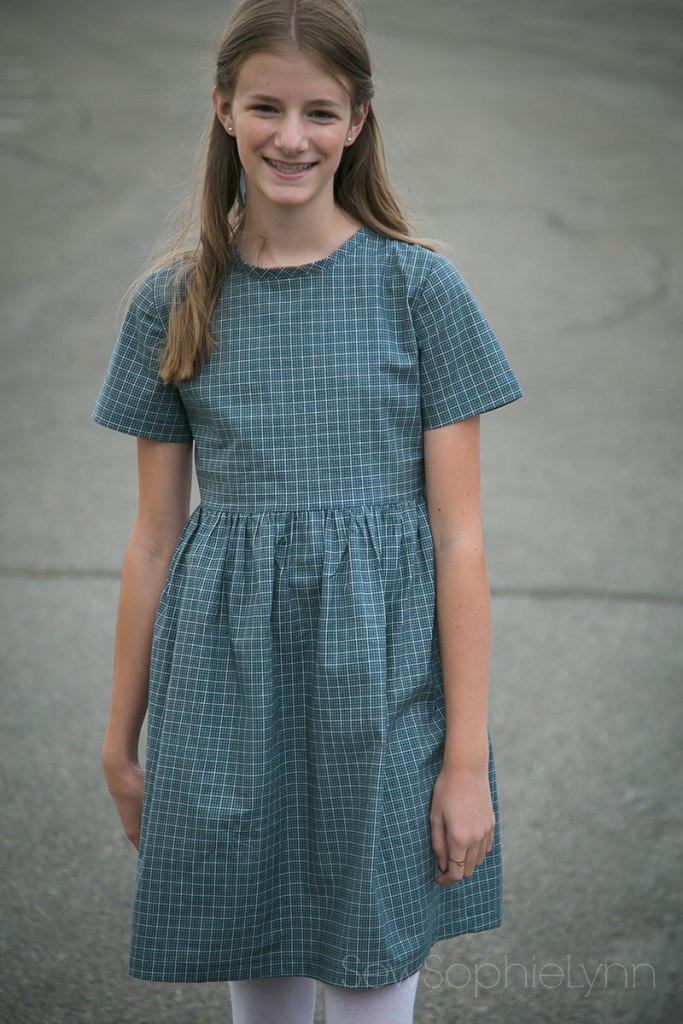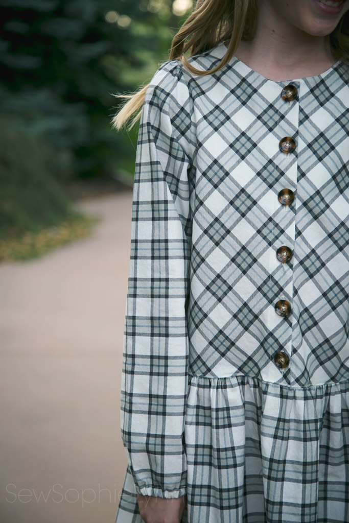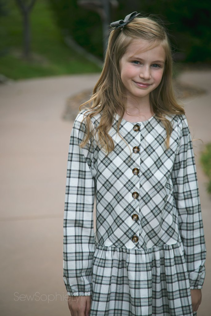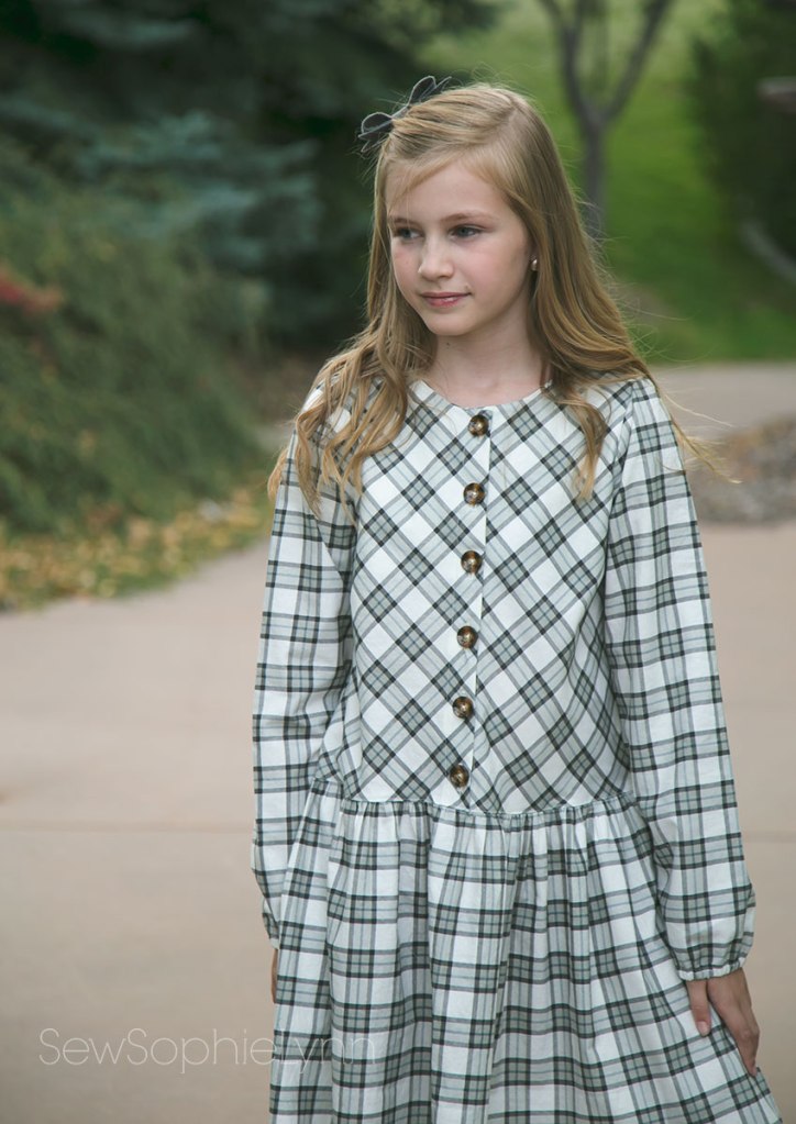 For this dress I used the Jilly Atlanta Marlow– a favorite I sewed up here. I love the simple design and classic look. This is a size 8 width lengthened (remember this was meant for lil sis). The Marlow has cute front ruffles that I adore but unfortunately my girls are not big fans. Keep things plain and simple for them and then things will get worn. I’ve learned the hard way!