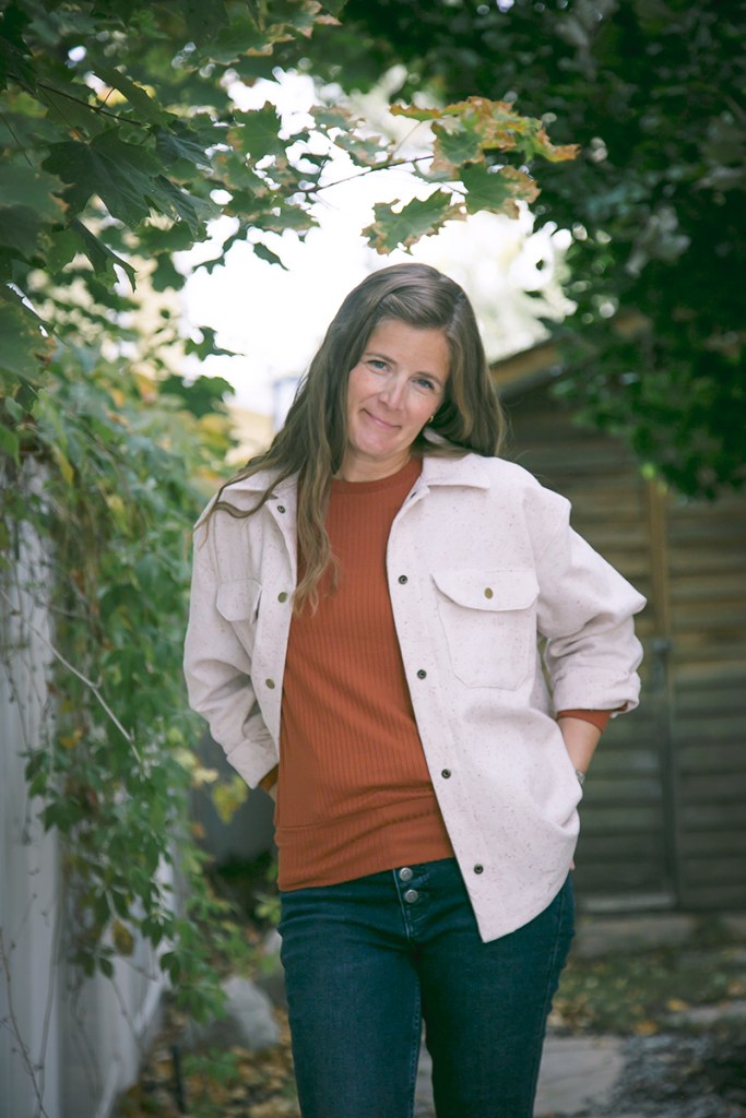 With my sewing time being less and less these days, I’ve been picky with my projects. I love quick and easy sews for that instant gratification and to relax. But every now and then I love to really escape and concentrate on something a little more challenging. The Fairmount was the perfect middle ground. It was more involved than a simple tee but each step is easy to follow and it was an ideal quiet afternoon project. Using a solid color was a genius move for my first one since I didn’t have to pattern match a plaid or stripe. It made cutting much quicker but I tried to pay special attention to my top stitching since it’s so much more visible on this fabric. Using metal snaps instead of buttons made it feel more like a jacket and also meant I got to skip buttonholes! Follow me for more lazy sewing tips, lol!