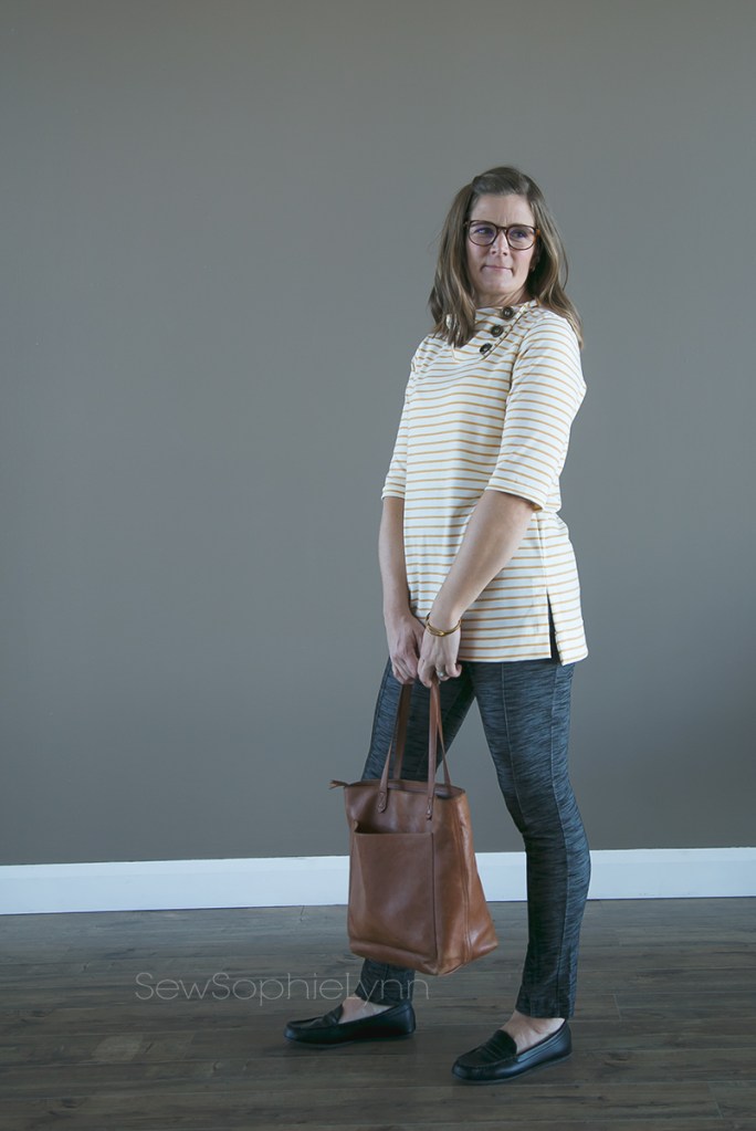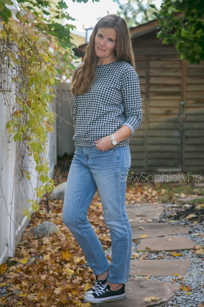 I love the Arlington paired with practically all of my bottoms but it’s especially cute with Sabrina Slims. The Sabrina Slims pattern is great for so many different fabrics. I love my ponte versions and these stretch denim ones are the best!