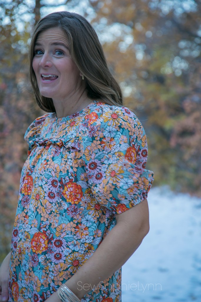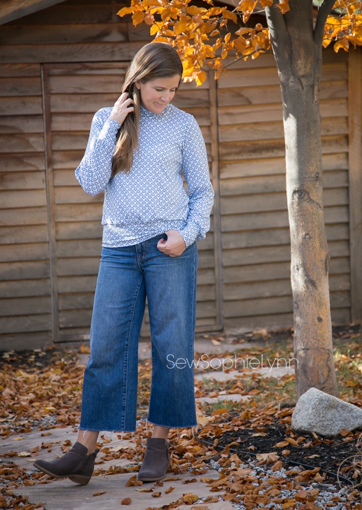 For this version, I sewed a size small with bishop sleeves and a full turtleneck. Those bishop sleeves are just my absolute favorite!
