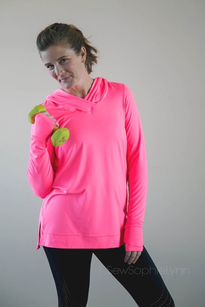 For this version, I did the v-neck hood and added thumbhole cuffs to the long sleeves (I used this tutorial found on the Love Notions blog). All of my versions are a size small.