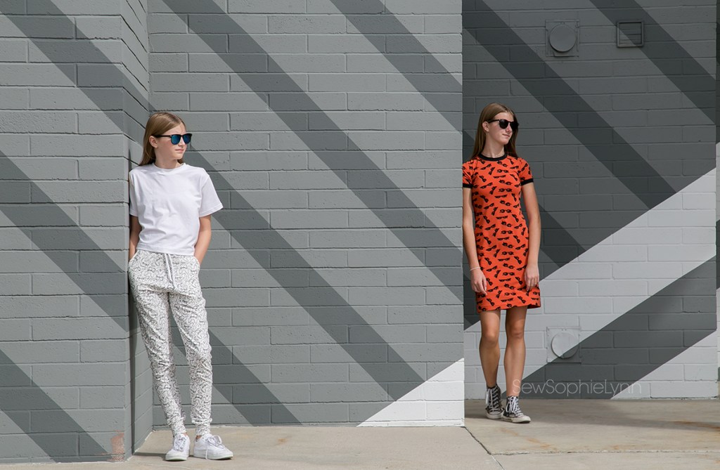 Payton is all about joggers these days so I knew she’d love this look. I used the Joseph Joggers from Project Run and Play. I love the slim fit and classic style of this pattern. We paired it with the Nicky Top from Made for Mermaids, our go-to for a cute, boxy look.