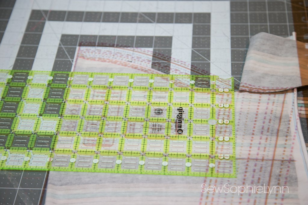 Once I snagged my husband’s laptop we were in business! I was able to easily project my first pattern, the Ellie and Mac Oversized Tee. I went with a loose, knit pattern to keep it simple but I didn’t need to worry. It was super easy to check the 1″ square on the pattern page to ensure my pattern was the correct size. One reason many people are hesitant with projectors is that it makes pattern adjustments a little more difficult. For me, my most common adjustment is adding length and it was so easy! No extra paper to tape on, just my trusty quilting ruler.