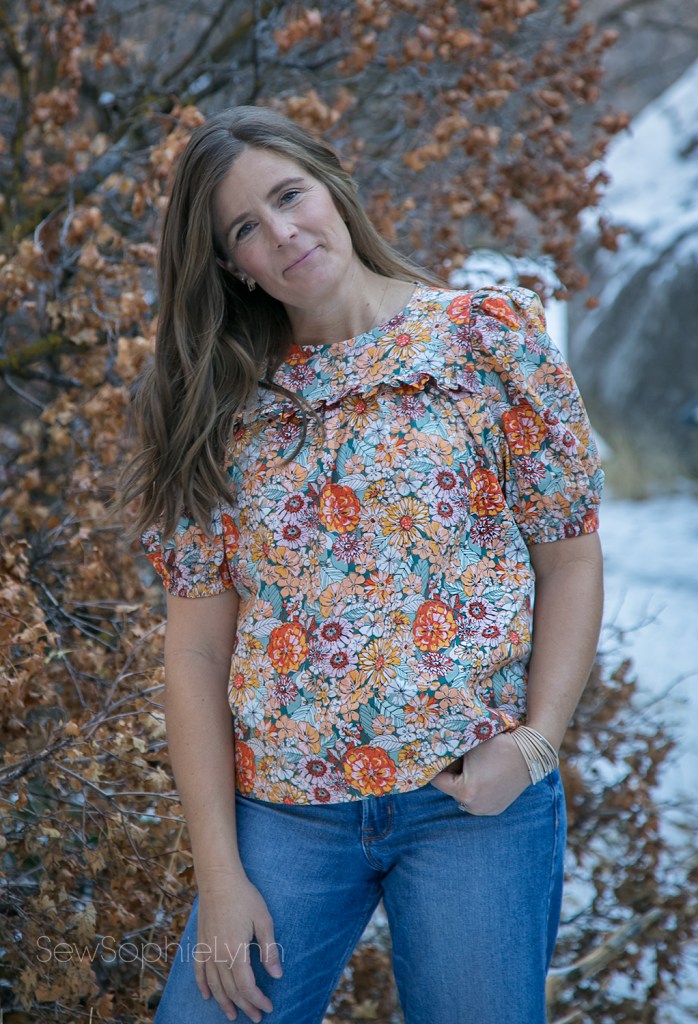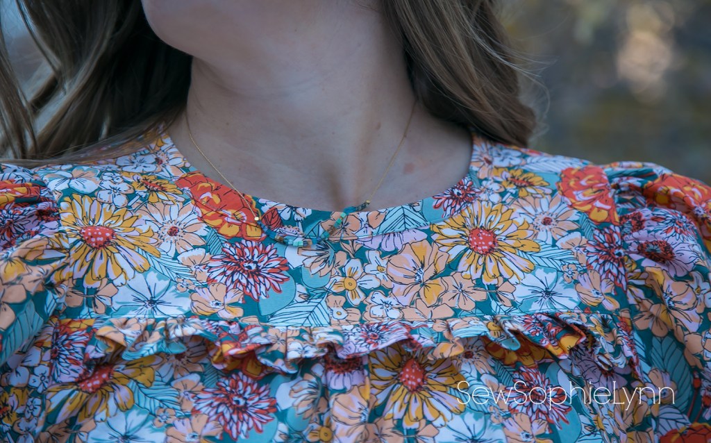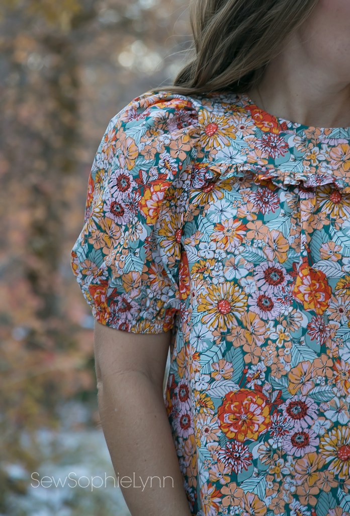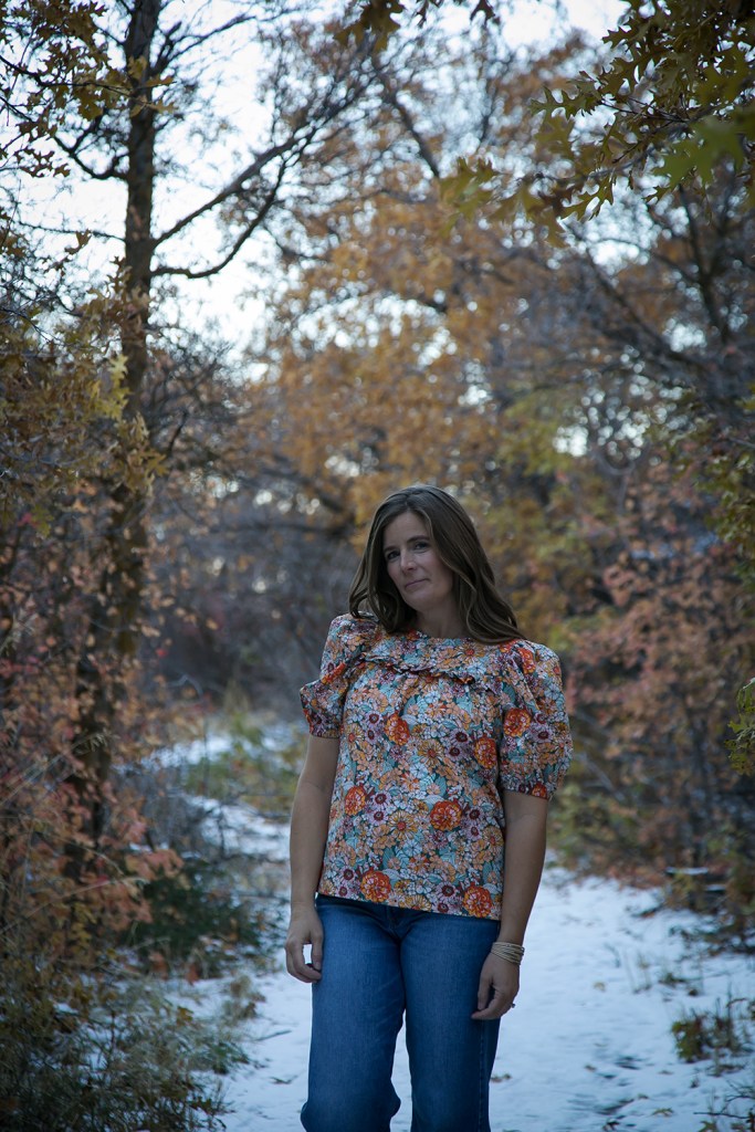 The chest ruffle detail and those big statement sleeves are what set this pattern apart from your basic top. They are extra full in this sturdy cotton but I bet they’d be drapey and gorgeous in a voile or rayon.