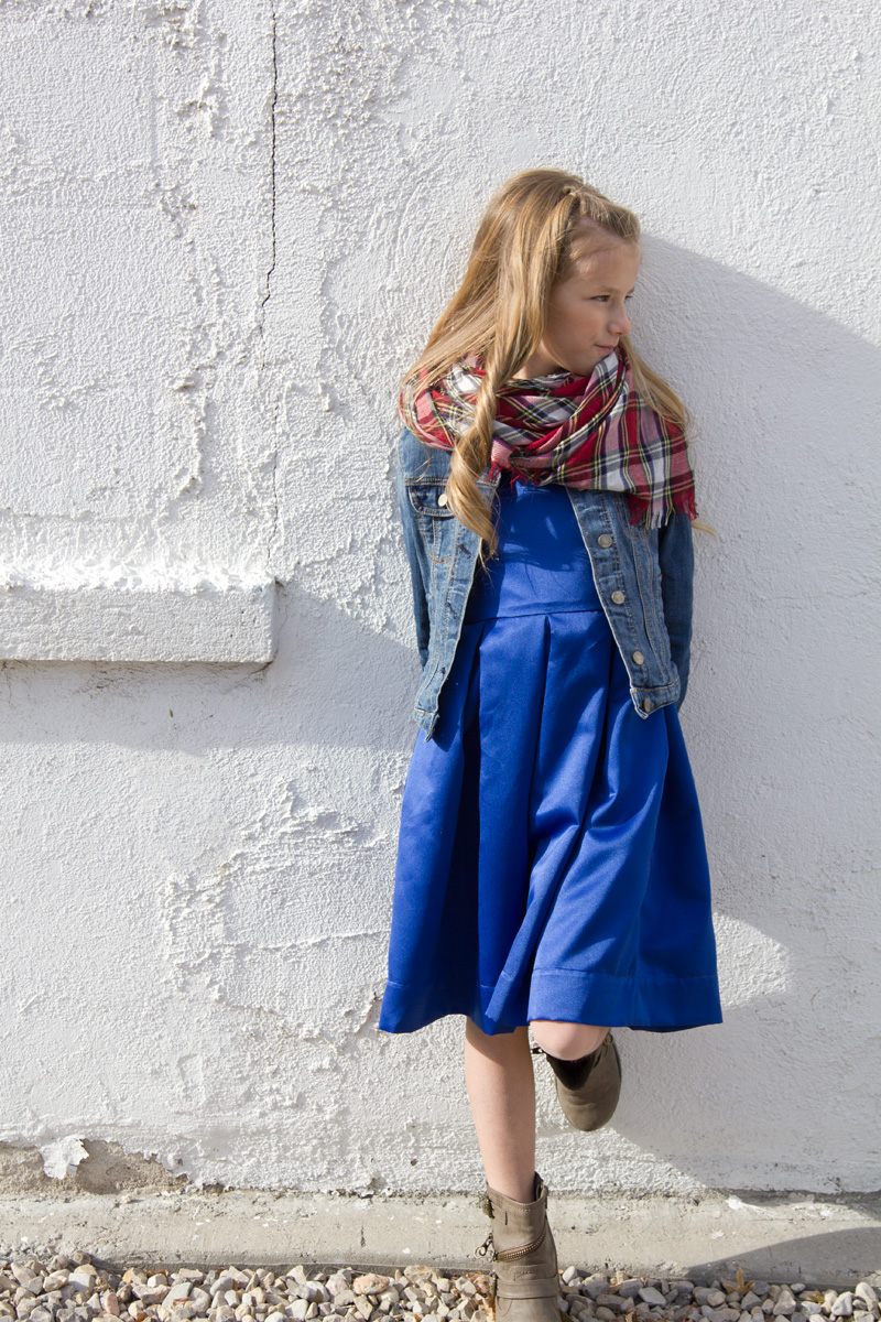 I used the Linden Shorts and Skirt pattern for the skirt changing up a few things for this look. I slimmed it down a bit and did my own slash pockets. I also drafted my own waistband and used an invisible side zipper for closure. This skirt is a prime example of why I sew for this girl. She measured an 8 waist and 12 length and I still needed to bring in the back middle seam a couple of inches and customize the width even more. Ready to wear bottoms are always so short on her and skirts are near impossible to get in a decent length! So glad we can create a garment that fits her tall, tiny frame!