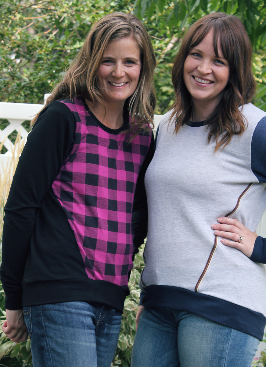 This cute plaid and polka dot version is my new favorite thing. I used french terry dots and plaid double knit from Raspberry Creek Fabrics– the BEST place to get your cozy fabrics for this pattern. This is view B- the view I do the most. I can whip one of these bad boys up in the time it takes to watch an episode of the Office. So stinking fast! It’s also my favorite pattern to use up scraps and mix prints.