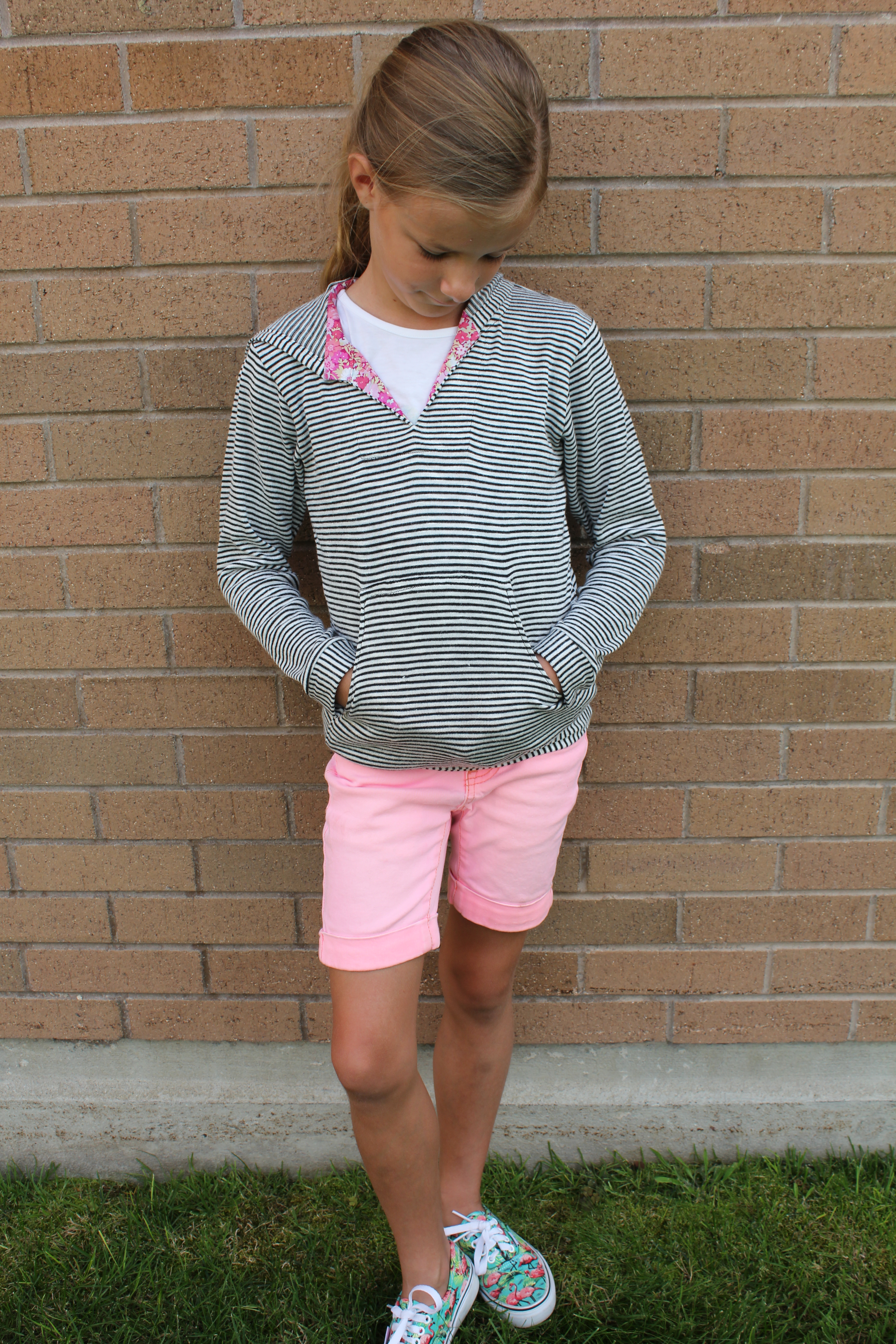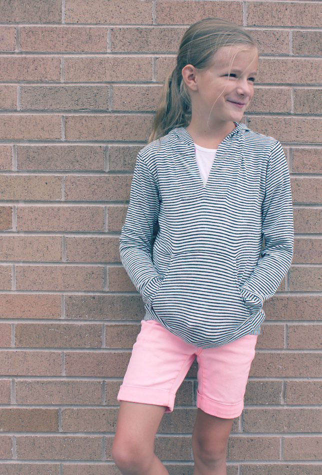 Not that I don’t love me a good hoodie. This version was actually made by my swap buddy, Jessie, for a monthly sewing swap I do. It’s pretty awesome and I sure lucked out that month. Not only did she send me this amazing version but she also tucked in two fun short sleeve versions as well.