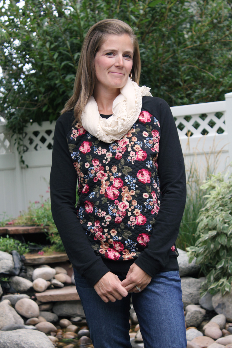I think I could wear a raglan everyday. If you know me, you might think that I actually do. I have long sleeve, short sleeve, three-quarter sleeves, sweatshirts, hoodies, and even a sweater knit version. They are so fun to mix and match fabric and to add fun details like kangaroo pockets or floral bias trim neck binding. I’m a stay-at-home mom so my ‘work’ outfits are usually all about comfort. Because of that, I mainly sew casual clothes for myself and save the fancy stuff for my girls (less fabric, time, and let’s face it- they’re WAY cuter to sew for).