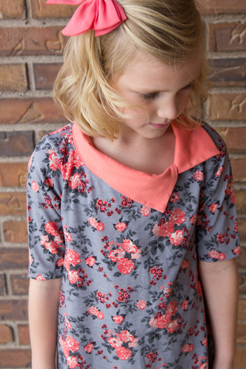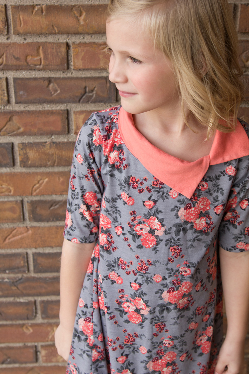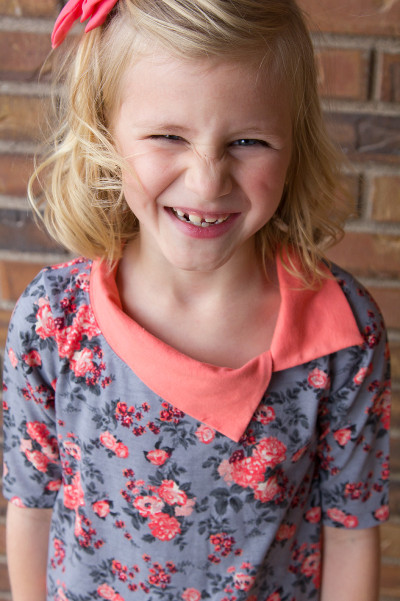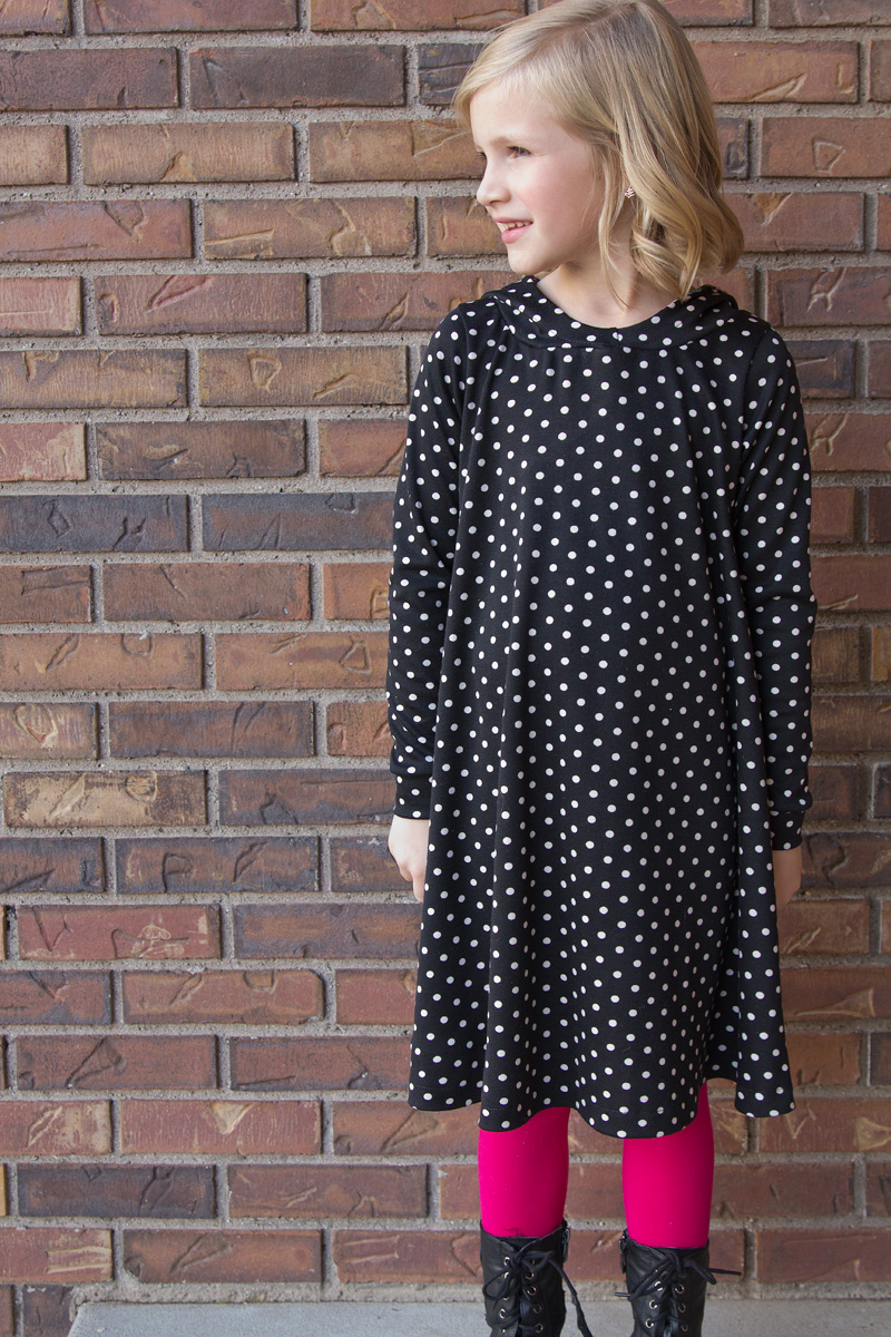 I used the bishop sleeve and added length. I measured from her shoulder to wrist and added seam allowance. I extended my sleeve length straight down on both sides. Next time I would add another inch- it’s a cute wrist length here but I always like to get as long of use as I can out of their clothes!