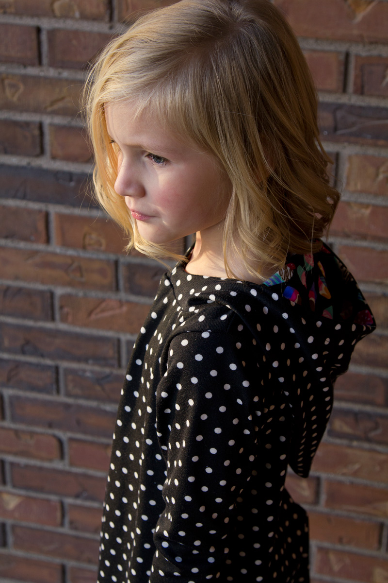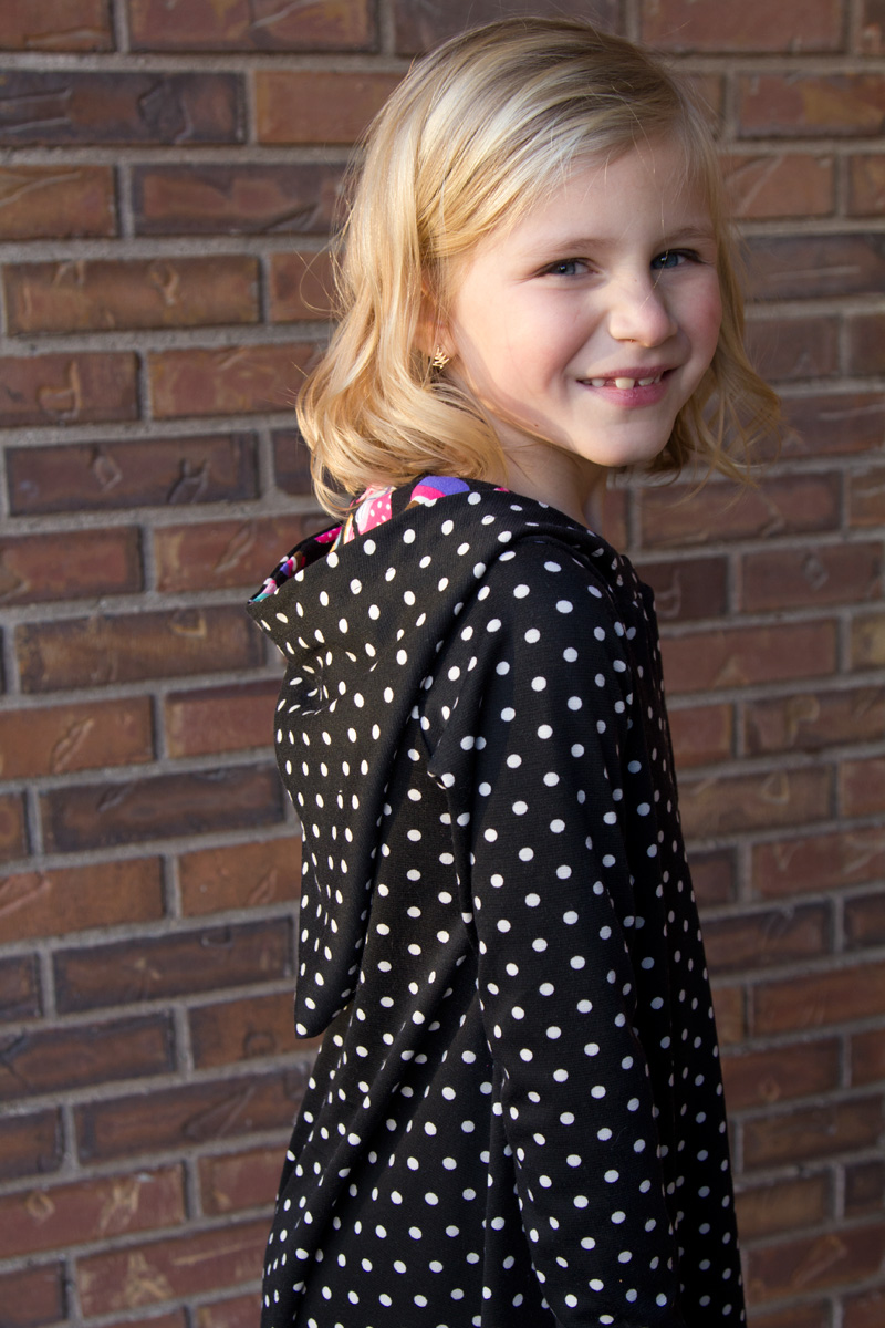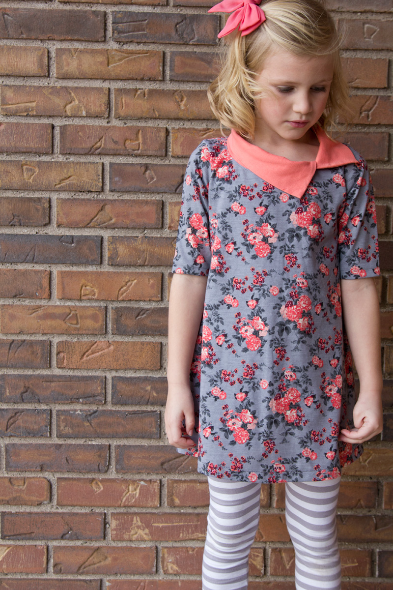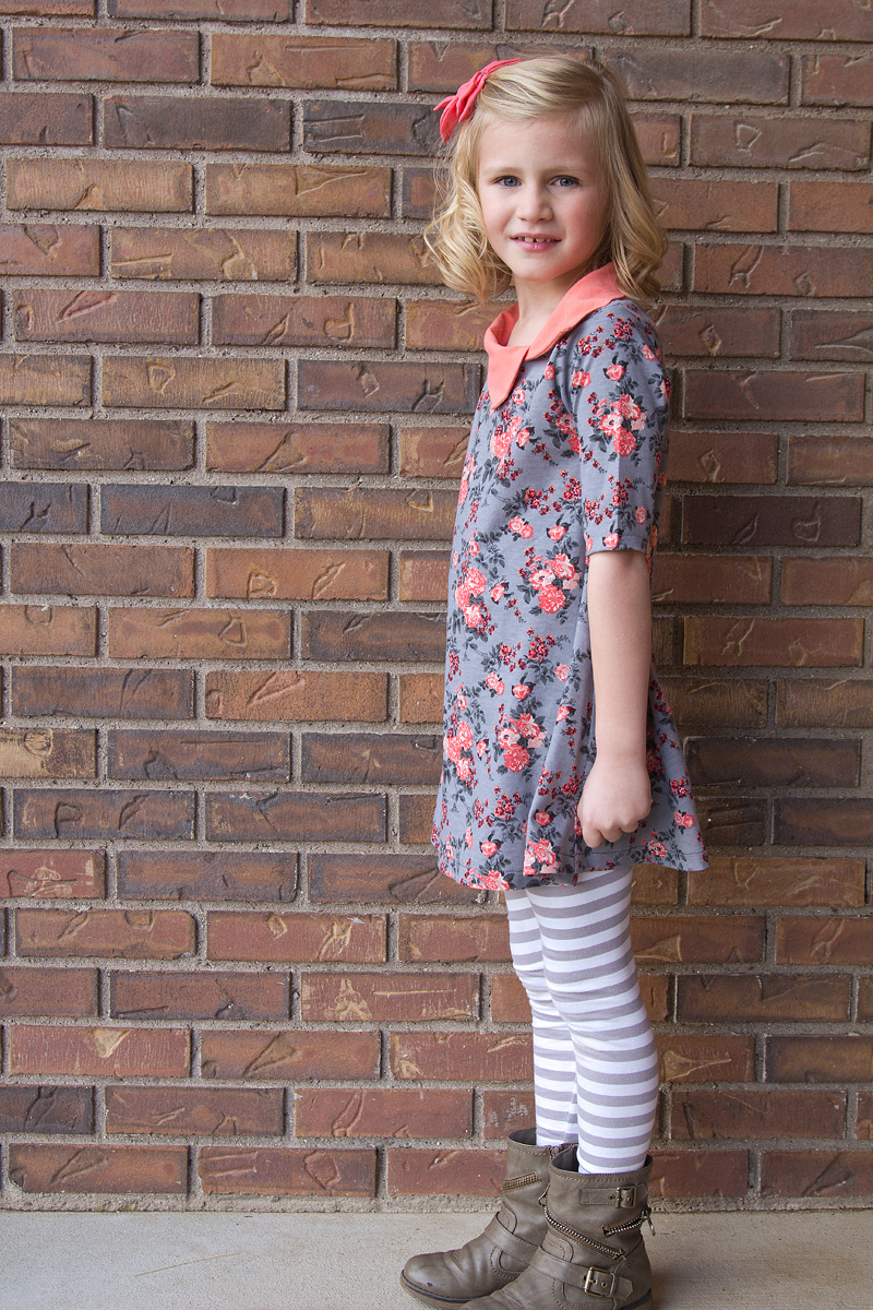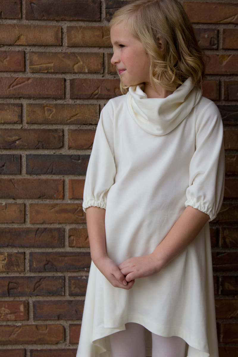 I used the bishop sleeve and added length. I measured from her shoulder to wrist and added seam allowance. I extended my sleeve length straight down on both sides. Next time I would add another inch- it’s a cute wrist length here but I always like to get as long of use as I can out of their clothes!