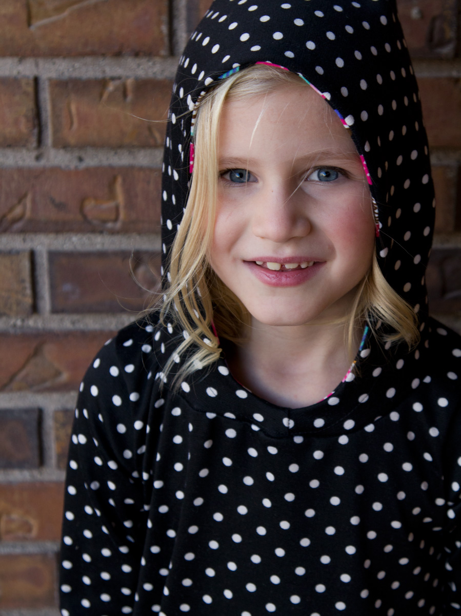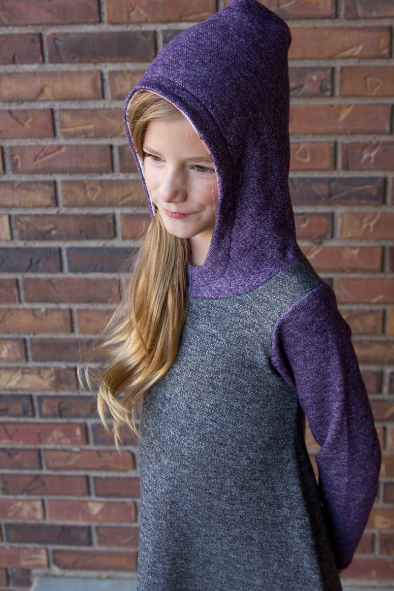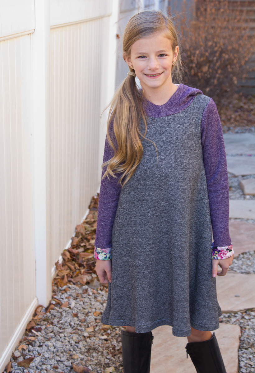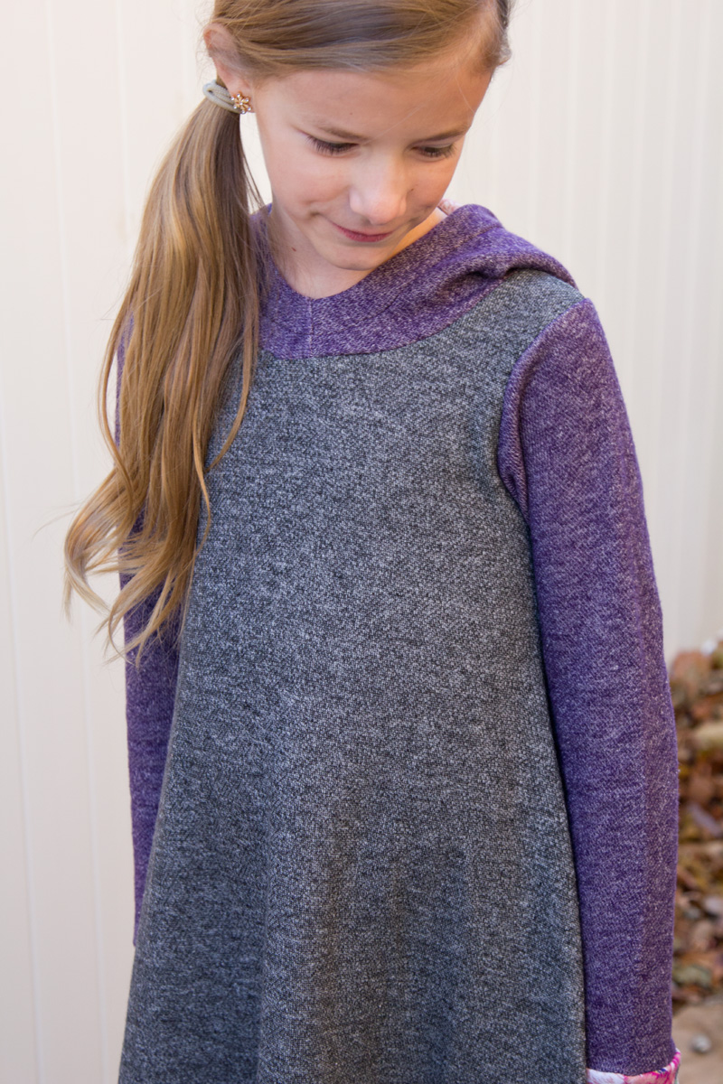 I used the bishop sleeve and added length. I measured from her shoulder to wrist and added seam allowance. I extended my sleeve length straight down on both sides. Next time I would add another inch- it’s a cute wrist length here but I always like to get as long of use as I can out of their clothes!