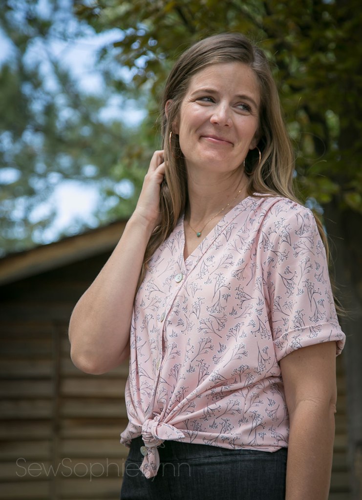 I used a stretch crepe from Raspberry Creek Fabrics. I love sewing with this fabric. It’s got amazing flow but not as slippery as some fabrics. The stretch also makes it so comfortable to wear! If you’re new to sewing wovens, I highly recommend this fabric.