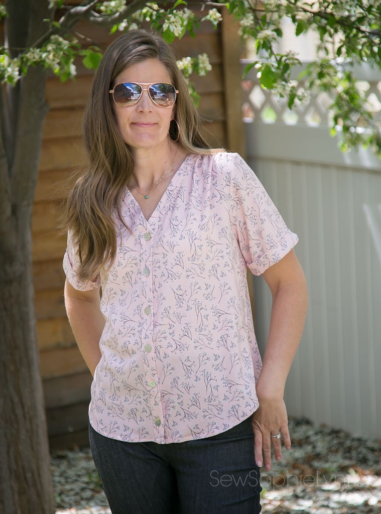I sewed up a size small with short cuffed sleeves and gathered shoulders. There is a shirred shoulder option as well as multiple sleeve styles.